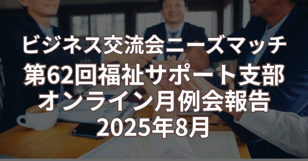 第62回ビジネス交流会ニーズマッチ「福祉サポート支部」オンライン開催